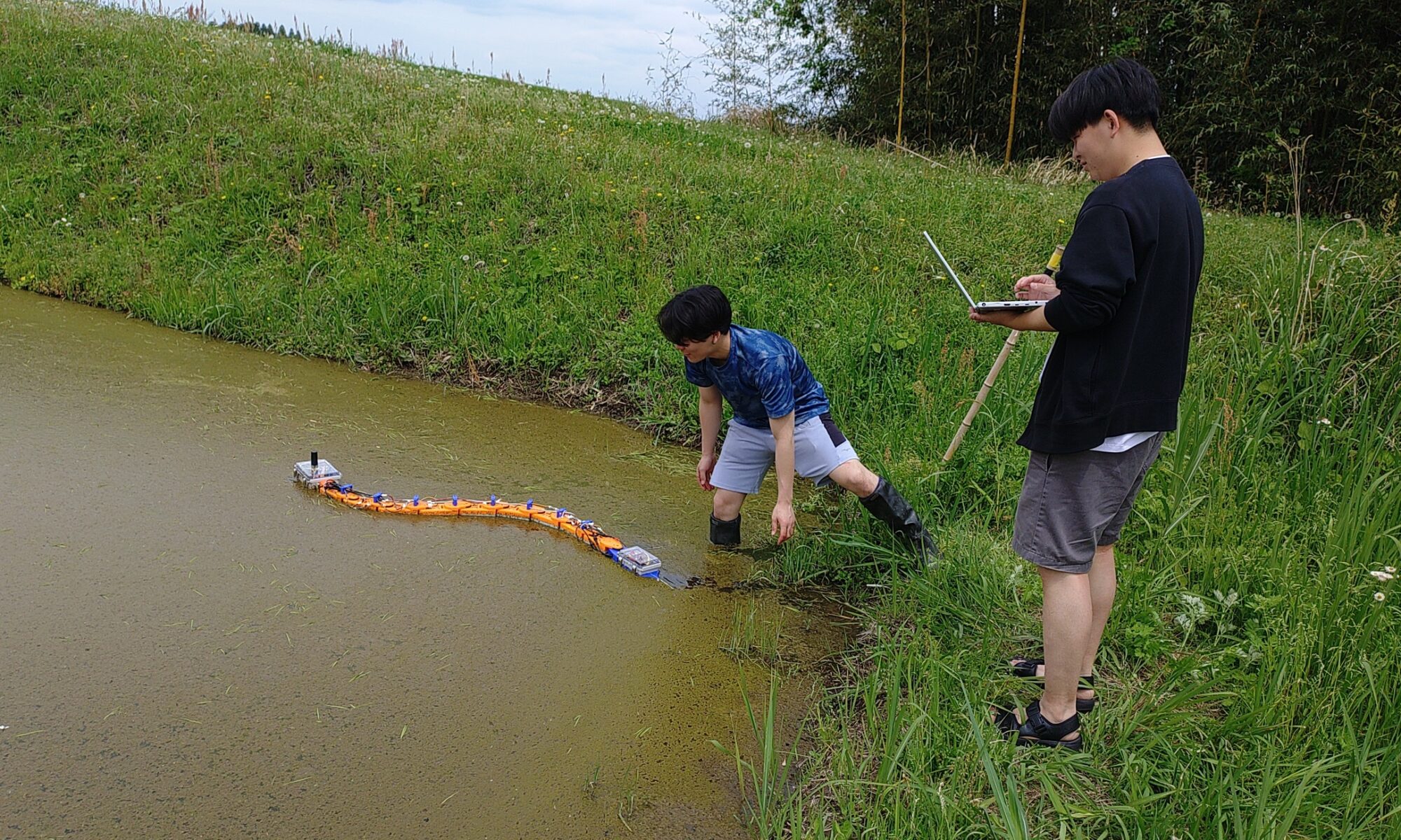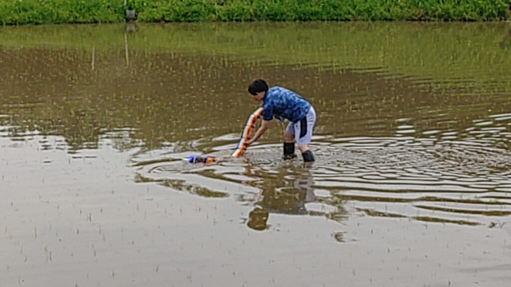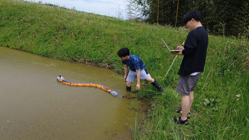 田植えの季節になりました.青木研では土曜から水田除草ヘビロボットの実験を開始しました.