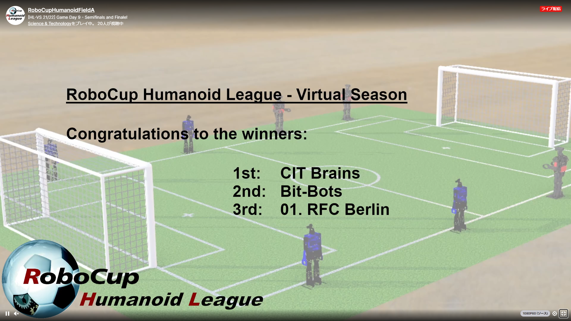 未来ロボティクス学科の学生有志が運営するチームCIT BrainsがRoboCup Humanoid League Virtual Season 2021/22において世界1位となりました.
