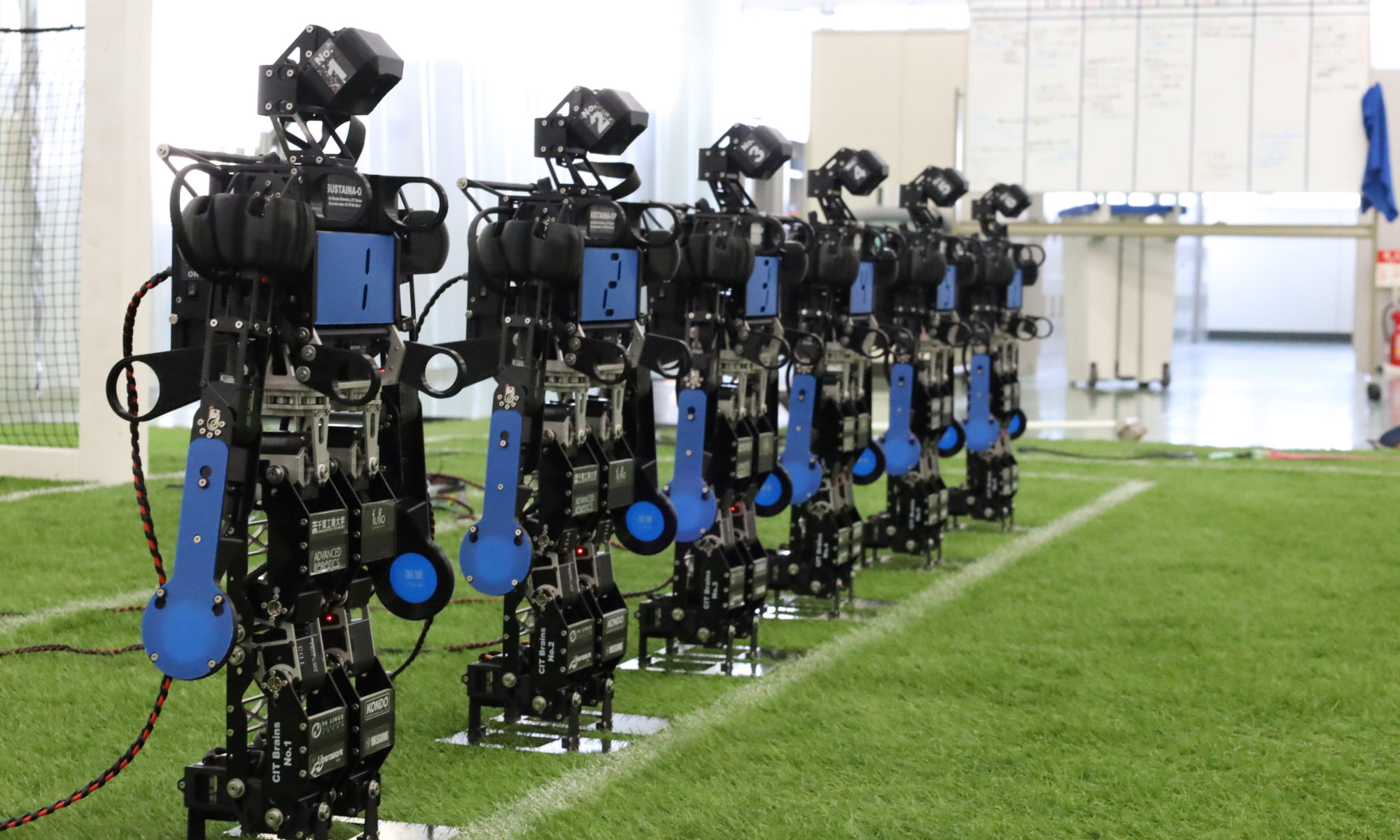 新たに第6世代となるヒューマノイドロボットSUSTAINA-OPを開発して,新しい技術で世界に臨みます.これらのロボットが20分間人の手を全く借りずに自動でサッカーを行います.